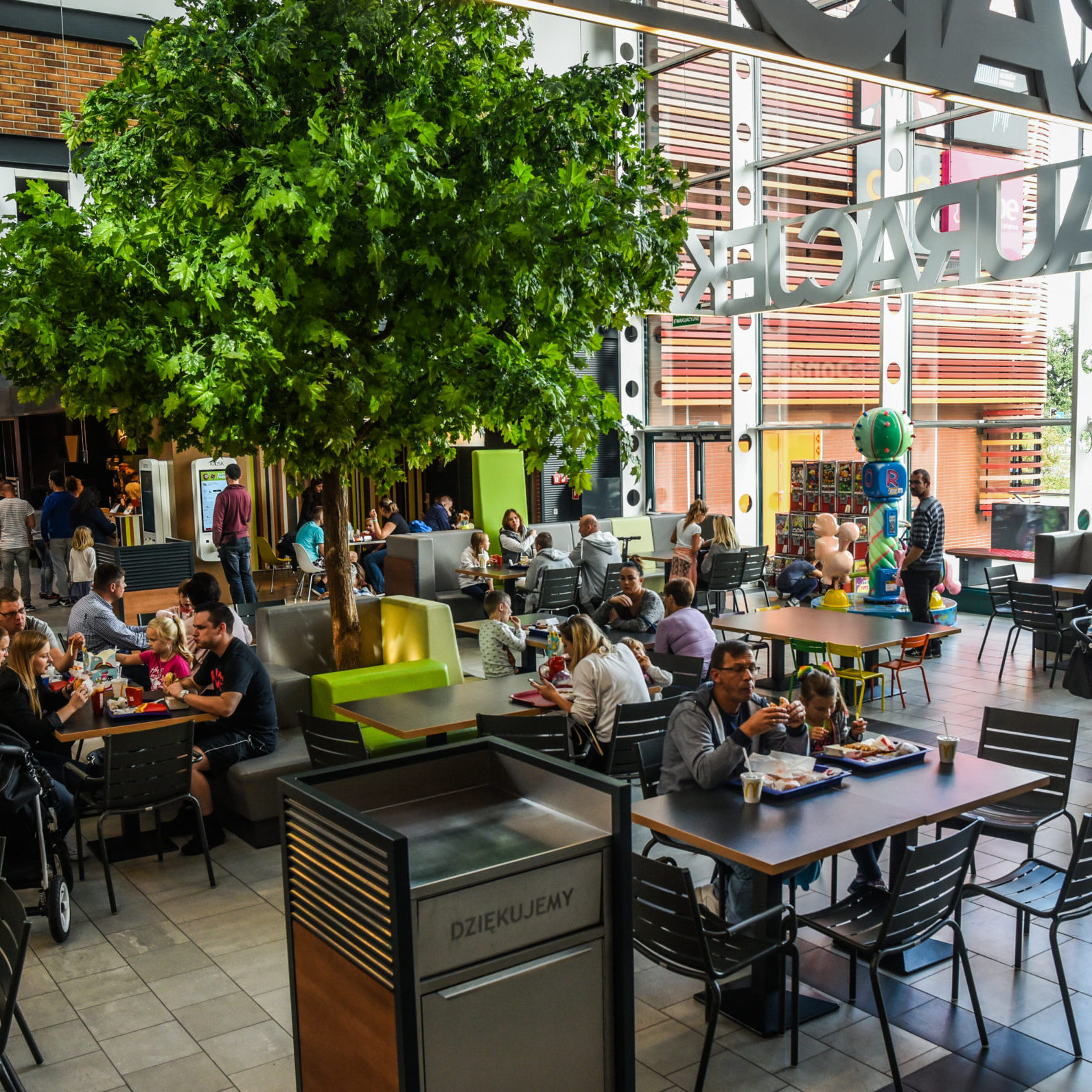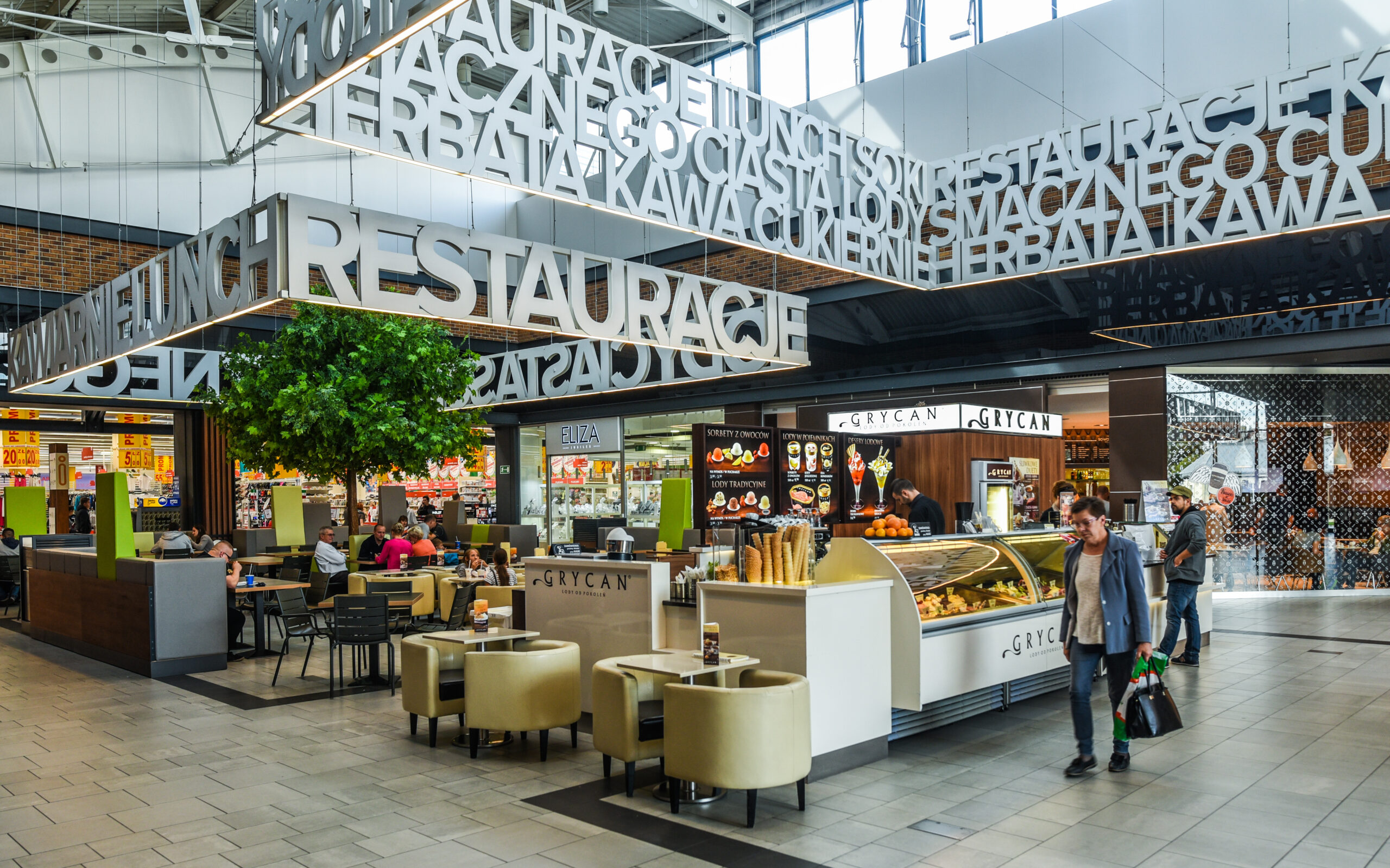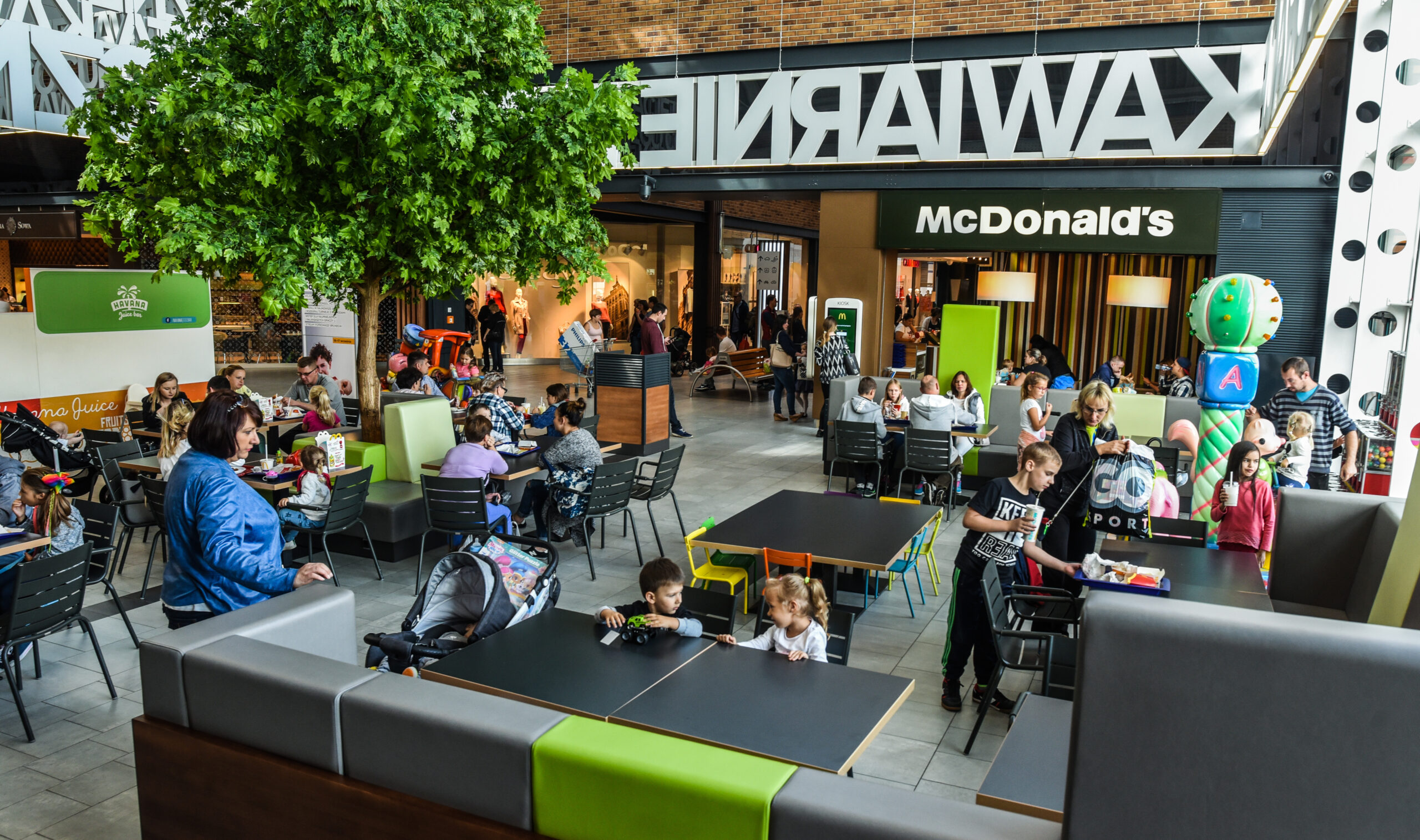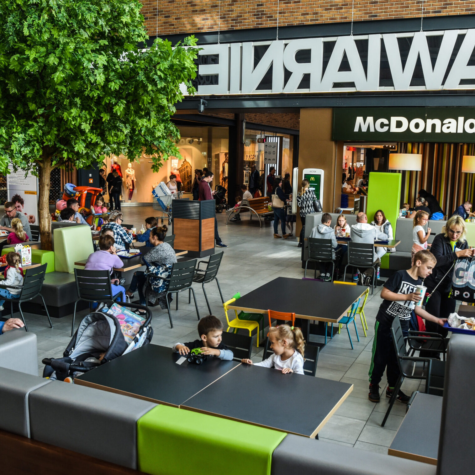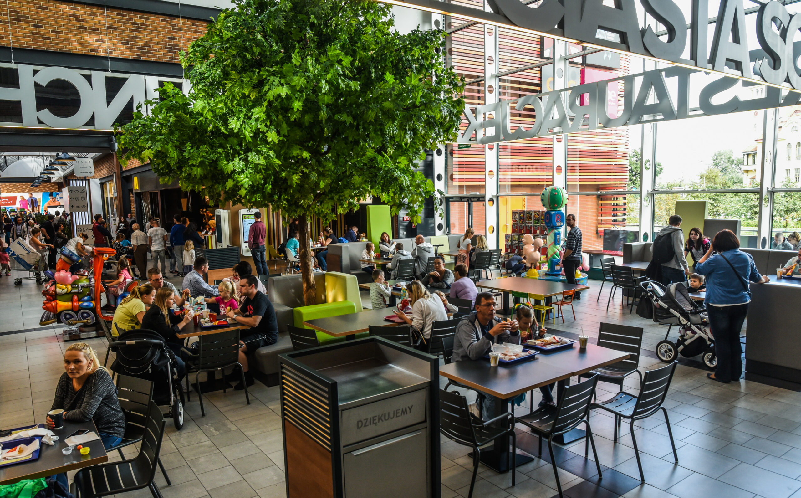 - Przestrzeń handlową uzupełnia strefa gastronomiczna z wydzieloną częścią z udogodnieniami dla rodzin z dziećmi.